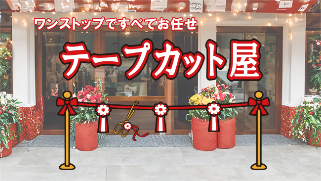 オープンに華をそえるテープカット テレビでよく見るテープカット!でオープニングイベントを演出しませんか? テープカットは、写真・動画映えするので、 SNSなどにオープンしたよ!!と、アピールできます。 設営から運営・施設&道路許可申請まですべてをサポートする「テープカット屋」なら 道具だけあってもやり方が・・・という心配はありません。 「テープカット屋」は、関西No1のPR会社がラプレが運営する、サービス名ですのでご安心ください |